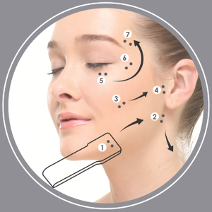 - After that, gently sliding the Skin Toning Module from Point 1 to Point 2, repeat 10 times.